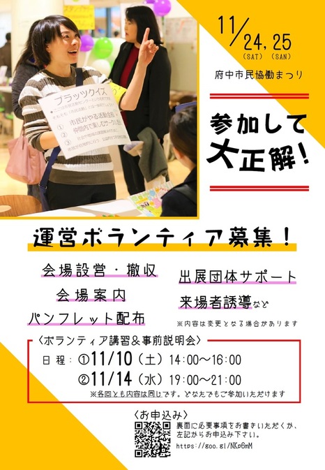 【ボランティア募集!】第4回府中市民協働まつり運営ボランティア