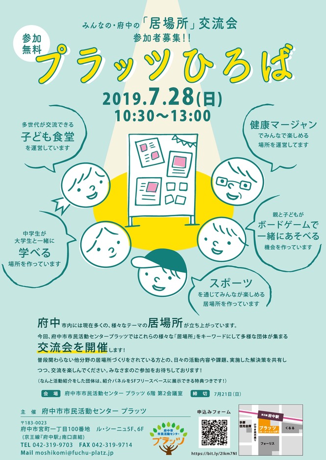 (終了)【7/28開催!】プラッツひろば みんなの・府中の「居場所」交流会
