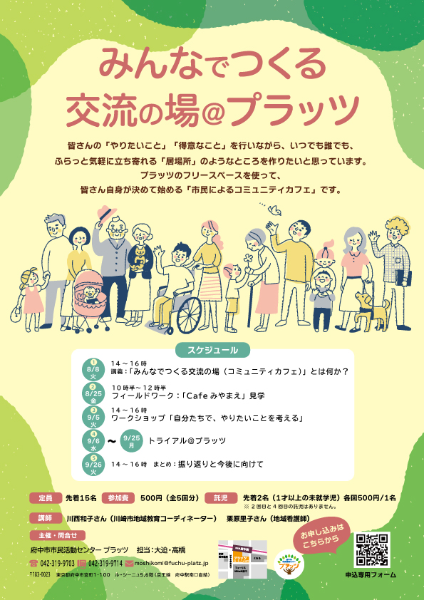 (募集終了)【8/8・25、9/5・6~25・26全5回開催!】みんなでつくる交流の場@プラッツ