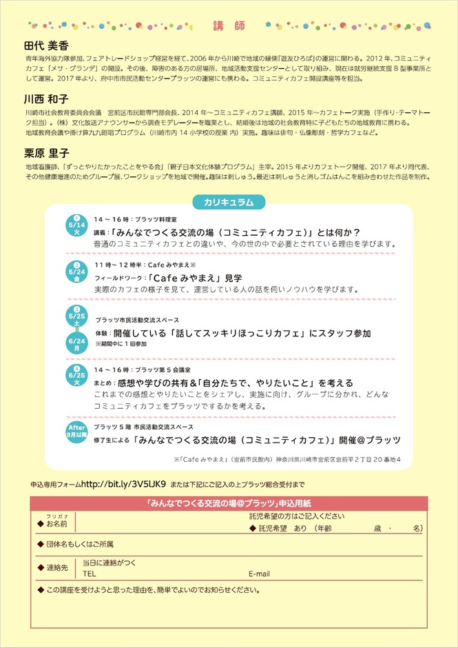 2017年より、府中市市民活動センタープラッツの運営にも携わる。コミュニティカフェ開設講座等を担当。